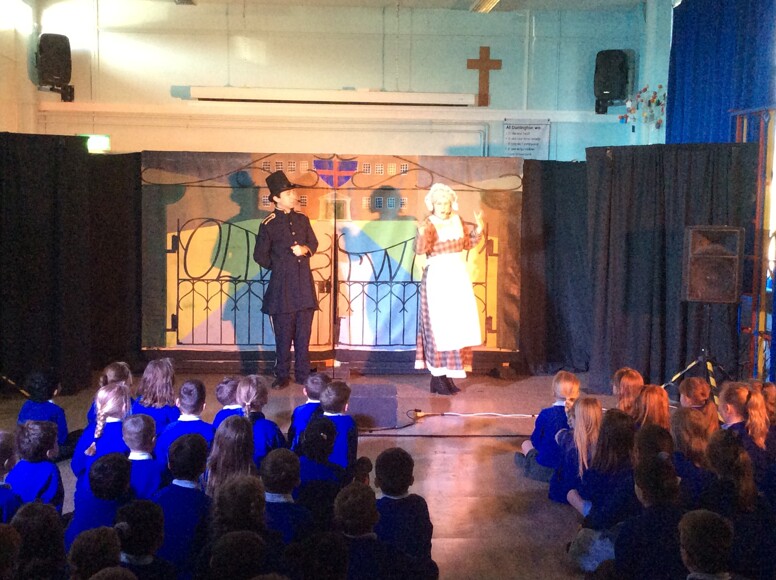 We were treated to a performance by M and M Productions on Monday. They retold the story of Oliver Twist and year 2 were invited to stay on and take part in a fantastic drama workshop afterwards. M and M brought their own lights, sound system and amazing scenery to transform our hall into Victorian London and the children really enjoyed the whole experience. So much so, that we have already booked them to return in 2026,when they will be performing The Secret Garden.