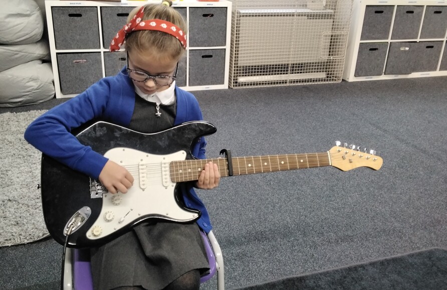 We love music at Durrington Infants. As well as singing in collective worship, we also have a lunchtime choir club and peripatetic music lessons. Frances and Harry visit us each week to teach guitar, piano and drums.