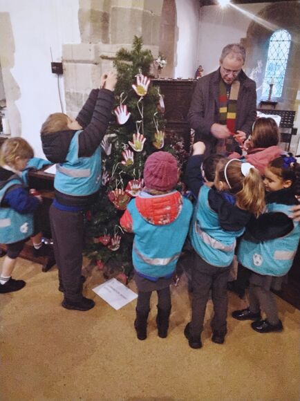 The children were invited to decorate a tree as part of the Durrington Christmas tree festival. Each child has made a decoration to hang on the tree which symbolises our school value of 'Love'. Teachers then chose some pupils who consistently demonstrate all of our school values to walk down to the church and decorate the tree for us.